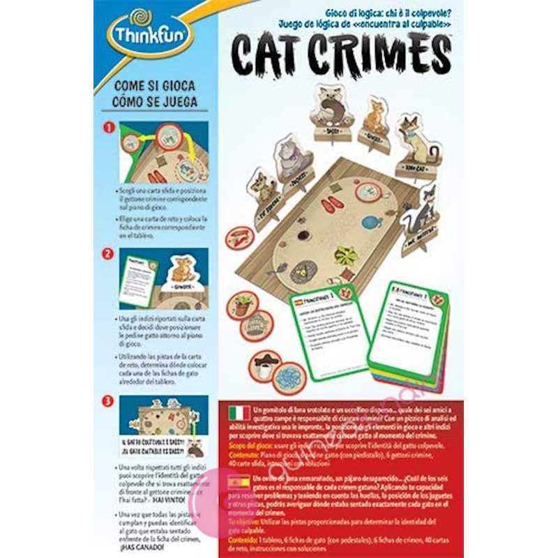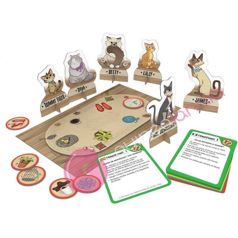 En Cat Crimes, tendrás que investigar y analizar pistas para identificar cuál de los seis amigos de cuatro patas es el culpable. Utiliza las huellas dejadas en el tablero, la disposición de los elementos del juego y la situación de los demás gatos para reconstruir los eventos y descubrir dónde estaba cada gato en el momento del crimen.