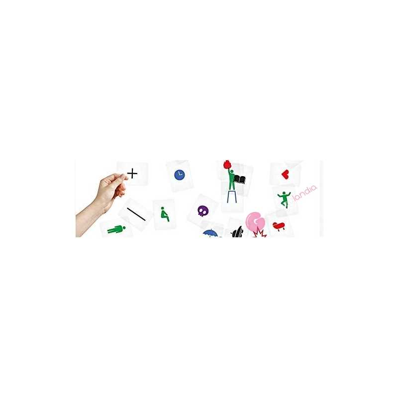 Con un total de 60 cartas transparentes, podrás combinarlas de diversas formas para representar cualquier cosa que desees: desde películas y lugares hasta personajes y conceptos abstractos. Simplemente apila las cartas unas sobre otras para formar tus enigmas y desafía a los demás jugadores a descifrar lo que has creado.