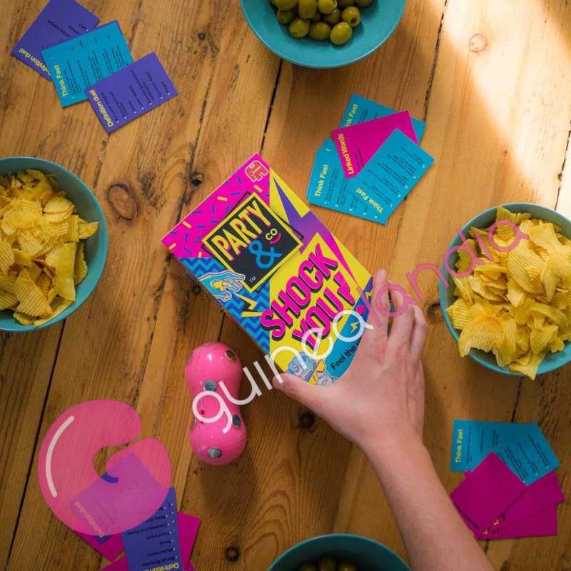 ¡Prepárate para un juego que es divertido, estresante y sorprendente! Party & Co. Shock You cuenta con tres retos diferentes y un temporizador aleatorio que añade emoción a cada ronda. El objetivo es completar las pruebas antes de que se agote el tiempo del Shocknut y este te dé un calambre.