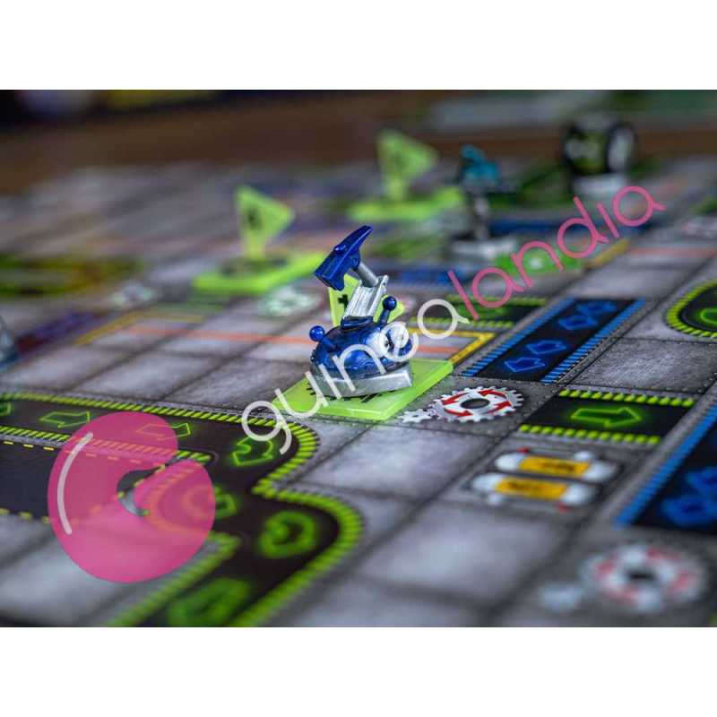 Programa tus movimientos, esquiva obstáculos y sabotea a tus rivales mientras el caos mecánico se desata. Entre láseres que disparan, cintas que te arrastran y engranajes que giran, cada turno es una locura robótica. ¡Rápido, estratégico y desternillante!