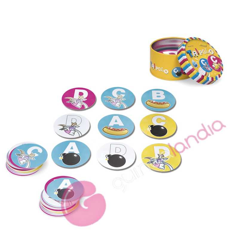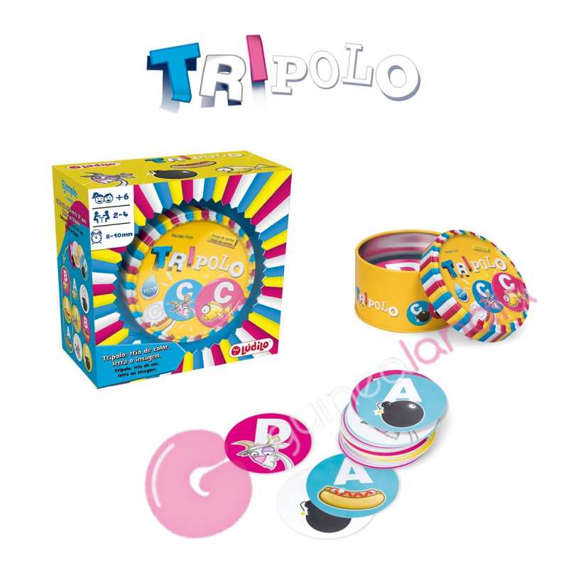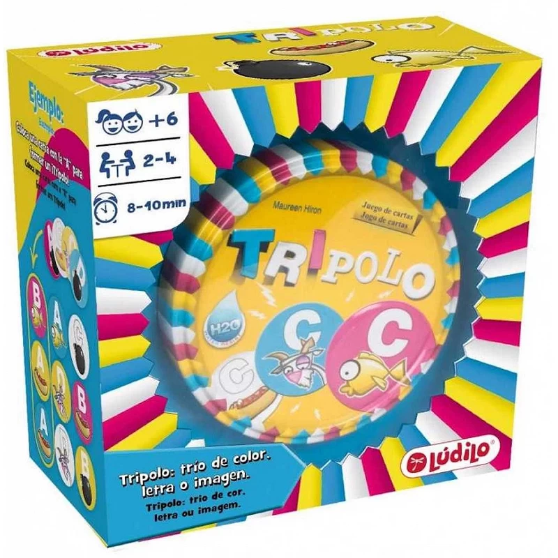 Tripolo es un emocionante juego de lógica y velocidad que pone a prueba tu capacidad de observación. Busca dos cartas en línea con la misma característica (color, letra o imagen) y completa un “Tripolo” colocando una de tus cartas. Forma tres en raya horizontal, vertical o diagonal para ganar.