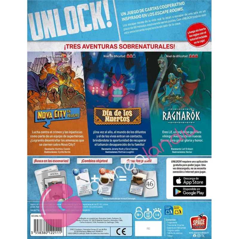 1 reglamento, 1 tutorial de 10 cartas, 3 aventuras (180 cartas), 1 hoja de cartón, 1 librito de aventura, 1 mapa